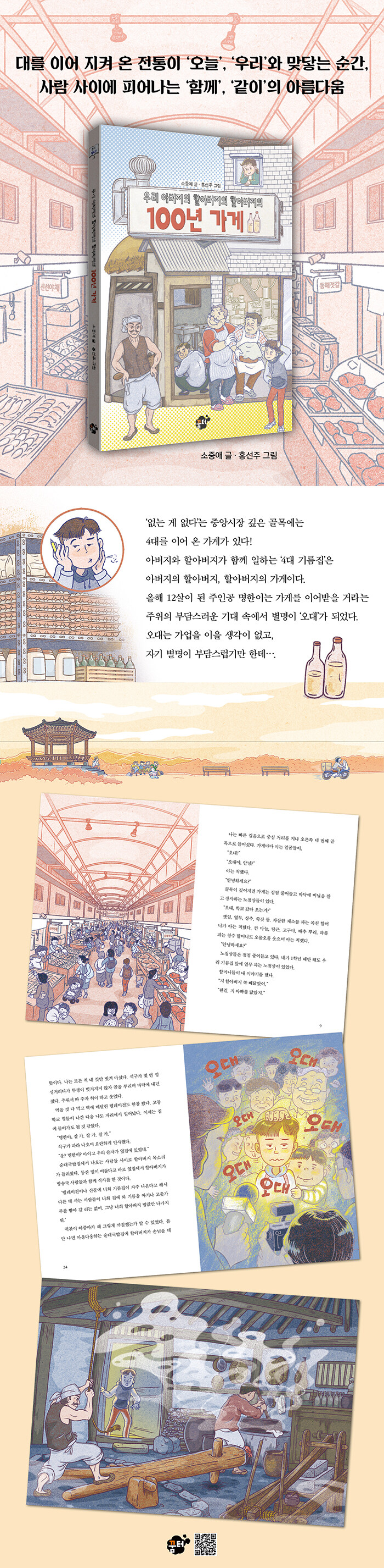 어린이들에게 의미있는 메시지로 깊은 감동을 주는 소중애 작가의 동화로 한 가족의 역사를 통해 우리가 어떤 성찰을 해야 하는지 긍정적인 자극을 준다. 주인공 명한이의 학교에서는 ‘중앙시장 역사 지도책’을 만들며 아이들이 시장 어른들의 삶과 가게의 역사를 알 수 있는 기회를 만든다.