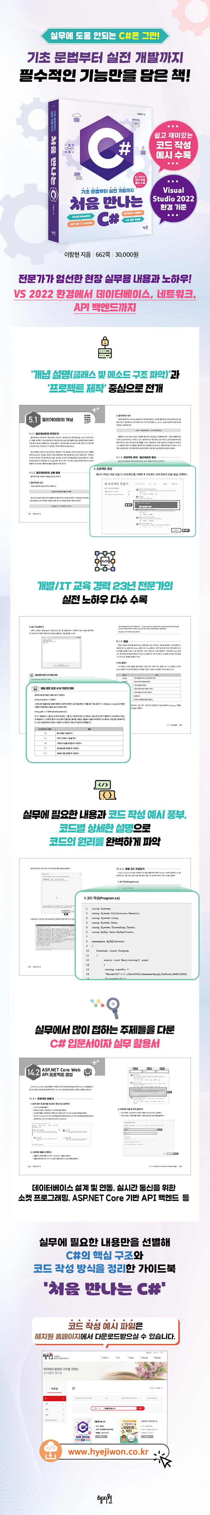 · 분류 : 국내도서 > 컴퓨터/모바일 > 프로그래밍 언어 > .NET > C#