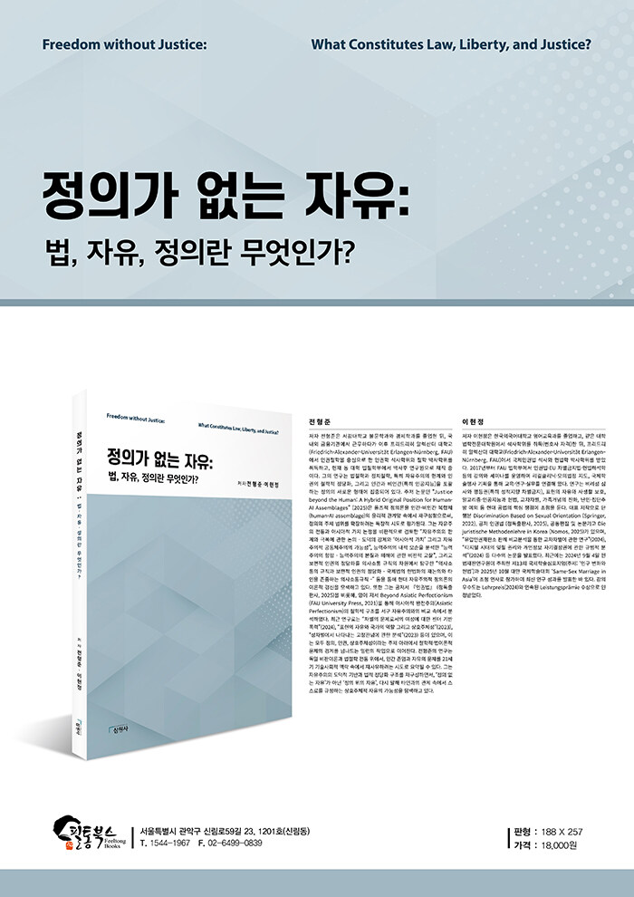 이렇듯 이 책은 철학적 탐구와 현실 사례 분석을 통해, 현대사회에 만연한 ‘정의 없는 자유’의 문제를 다각도로 조명하려 한다. 저자들은 이 책을 집필하면서 하나의 확신을 갖게 되었다. 그것은 자유와 정의는 결코 대립되는 개념이 아니라는 것, 그리고 정의 없는 자유는 결국 진정한 자유도 아니다라는 점이다. 자유는 방종과 다르며, 정의는 자유를 억압하는 족쇄가 아니다. 오히려 정의로운 질서 속에서만 개인의 참된 자유도 꽃피울 수 있다. 부디 이 책이 독자 여러분께 자유의 본질을 성찰하고 정의의 의미를 재발견하는 작은 계기가 되기를 바란다. 자유에 대한 심층적 이해를 통해, 우리는 비로소 법과 제도를 바로 세우고 정의로운 사회로 나아갈 비전을 얻을 수 있을 것이다. 오늘날의 혼란스러운 자유 담론을 넘어, 자유와 정의가 조화된 공동체를 꿈꾸며 이 책의 서문을 마친다.