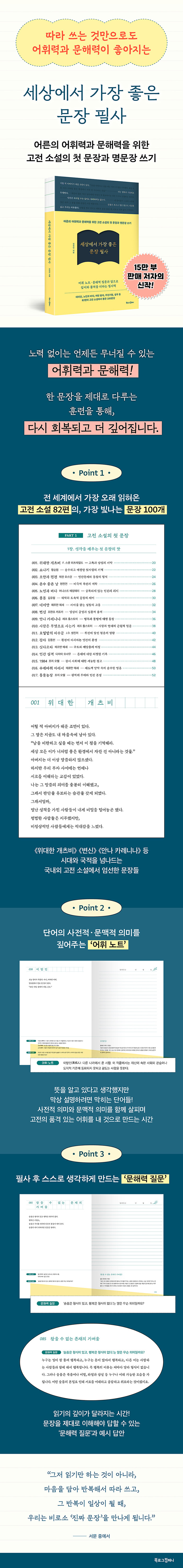 사실 저자에게 필사는 낯선 방법이 아니었다. 십여 년 전, 심한 우울증과 공황장애로 하루하루가 힘겹던 시절, 저자는 좋은 문장을 마음에 새기기 위해 쓰기 시작했다. 이해하려고 쓰고, 버텨내기 위해 쓰고, 살아내기 위해 썼다. 그리고 어느 순간 생각과 관점이 바뀌기 시작했고, 오랜 시간 자신을 괴롭히던 우울과 공황에서 벗어났다. 그 경험을 바탕으로 쓴 책이 《오늘, 행복을 쓰다》였고, 15만 명이 넘는 독자의 선택을 받았다. 필사는 실제로 사람을 바꾼다는 것을 경험으로 알고 있는 저자가, 이번에는 고전 소설을 읽으며 어휘력과 문해력 역시 눈에 띄게 달라지는 것을 확인했다. 그래서 이 책을 쓰기 시작했다.