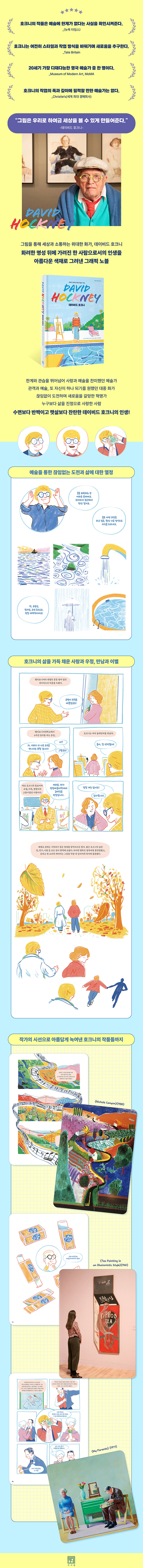 데이비드 호크니의 전기를 그의 작품을 닮은 따듯한 색감의 만화로 풀어낸 그래픽 노블이자 ‘세계에서 가장 비싼 그림을 그린 작가’, ‘영국 팝아트의 대부’, ‘현대 미술의 거장’ 등 화려한 명성 이면에 가려진 호크니의 삶을 조명하기 위한 결과물이다.