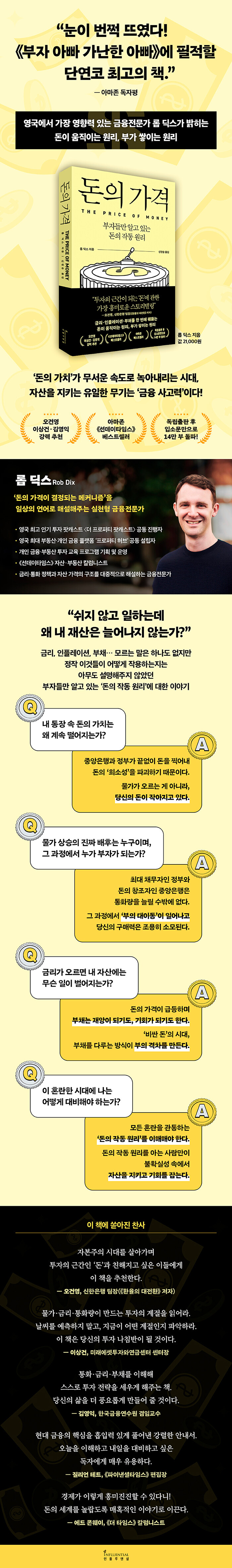 세상의 여러 지식 중에서 돈보다 더 알아두면 유용한 주제가 있을까? 솔직해지자. 우리 대부분은 돈에 대한 지식이 매우 부족하다. 우리는 평생 돈을 벌기 위해 노력하지만, 그 돈이 어디서 어떻게 생겨나는지에 대해선 전혀 모른다. 그러면서도 막상 돈을 손에 쥐고 나면 그걸 어떻게 다룰지에 대해서 현명한 결정을 내리길 요구받는다. 아무도 가르쳐주지 않았는데도 말이다.