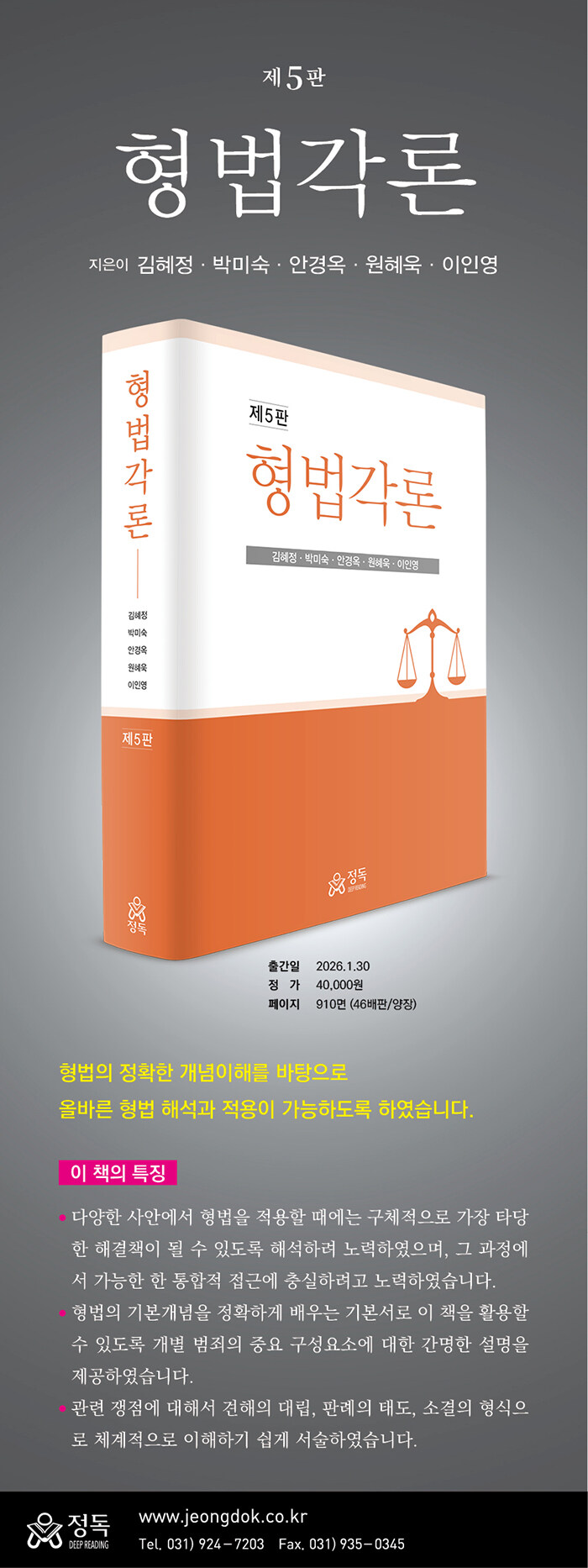 법률은 변화하는 시대상황과 국민정서를 반영하여야 한다. 개정판에는 3판이 출간된 이후의 주요 판결을 검토 및 반영하였다. 저자들은 각자의 서술 부분에 위의 개정과 판례의 변경을 꼼꼼히 반영하여 독자의 이해와 정리가 쉽게 이루어지도록 하였다.