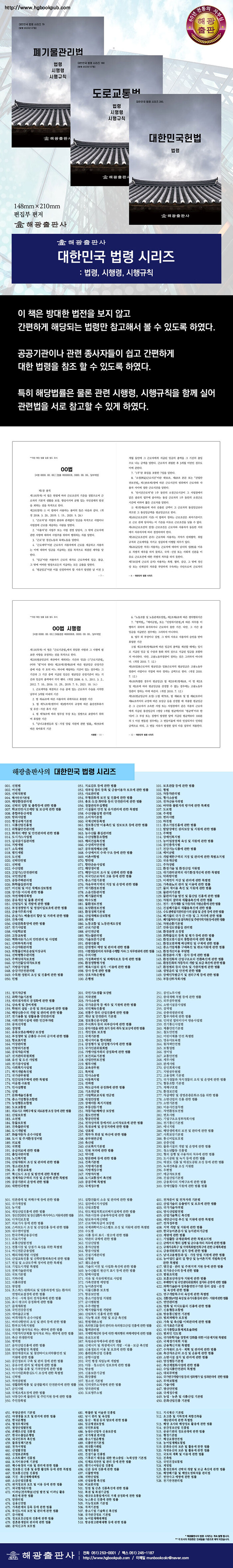 방대한 법전을 보지 않고 간편하게 해당되는 법령만 참고해서 볼 수 있도록 하였다. 공공기관이나 관련 종사자들이 쉽고 간편하게 해당 법령을 참조 할 수 있도록 하였다. 특히 해당법률은 물론 관련 시행령, 시행규칙을 함께 실어 관련법을 서로 참고할 수 있게 하였다.