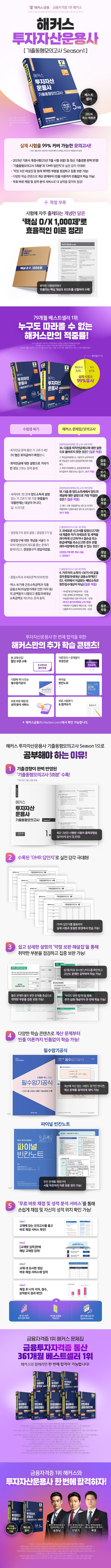 · 제목 : 2024 해커스 투자자산운용사 기출동형모의고사 Season 1 (2023년 기본서 개정사항 및 최신 기출경향 완벽 반영|무료 바로 채점 및 성적 분석 서비스|빈출 개념 O/X 문제 제공|5회분)