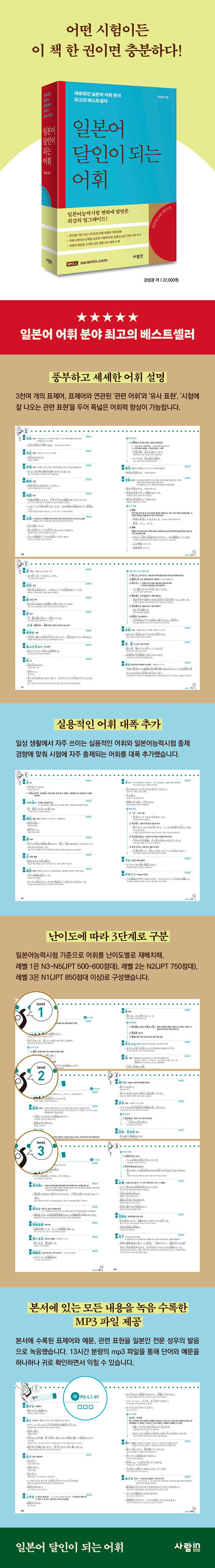 실용적인 커뮤니케이션 능력이 중요하게 평가되는 일본어능력시험의 출제 경향에 맞춰, JLPT는 물론 JPT 등의 각종 일본어 시험에도 완벽 대비할 수 있도록 일상생활에서도 자주 쓰이는 실용적인 어휘와 시험에 자주 출제되는 어휘를 대폭 추가했습니다.