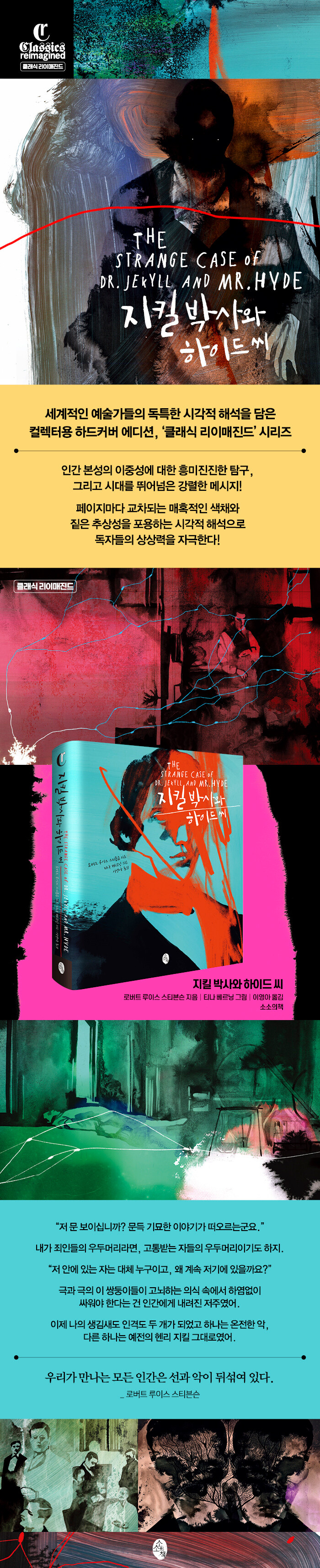 하이드가 사라진 후 어터슨은 불안한 기색으로 잠시 서 있었다. 그러다 느릿느릿 거리를 걷기 시작했지만, 한두 걸음마다 멈춰 서서 곤혹스러운 고민이 있는 듯 손으로 이마를 짚었다. 그가 걸으며 씨름하고 있는 이 문제는 좀처럼 풀릴 기미가 보이지 않았다. 하이드는 창백하고 난쟁이처럼 작달막했으며, 어디가 잘못됐는지 꼭 짚을 순 없어도 기형인 듯한 인상을 주었고, 미소 짓는 얼굴조차 보기 거북했고, 소심함과 배짱이 흉악하게 뒤섞인 태도로 어터슨을 대했으며, 약간 툭툭 끊어지는 쉰 목소리로 속삭이듯 말했다. 그를 싫어할 만한 이유는 이처럼 넘쳐났지만, 그 모든 점을 다 합친다 해도 어터슨이 지금껏 몰랐던 혐오와 증오, 두려움을 그에게서 느꼈던 이유를 설명할 순 없었다.