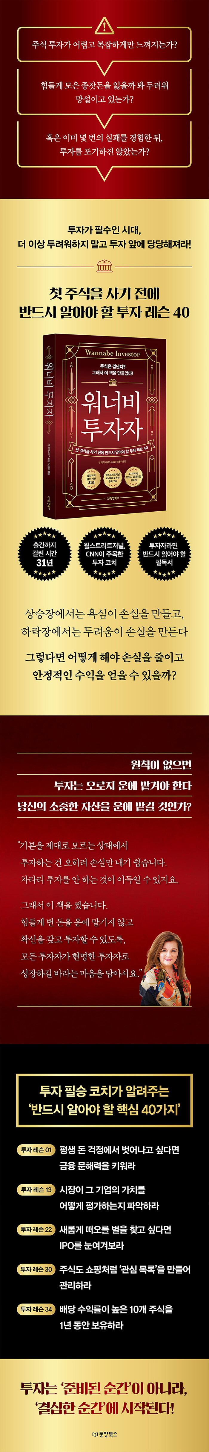 투자는 준비된 순간이 아니라, 결심한 순간에 시작된다. 저자는 이 깨달음을 바탕으로, 투자를 망설이는 사람들에게 코치가 되어 주겠다고 마음먹었다.