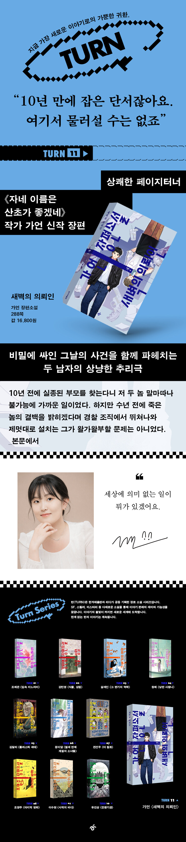 특유의 온도를 장착한 새뜻한 이야기로 독자들과 호흡해온 가언 작가의 장편소설 《새벽의 의뢰인》이 한겨레출판 턴 시리즈 열한 번째 작품으로 출간된다.