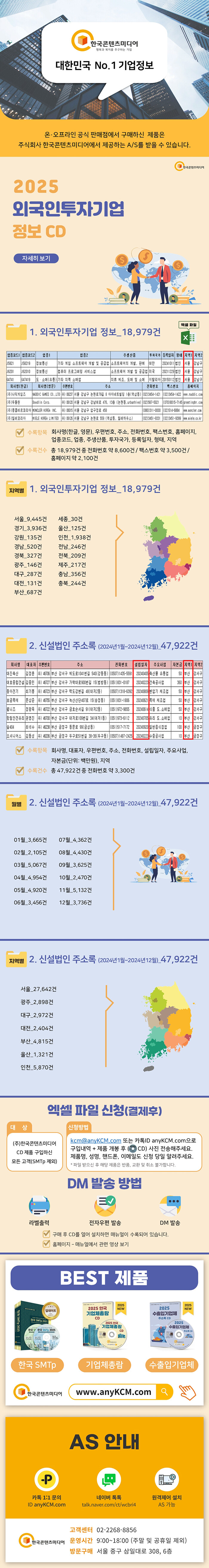 수록건수 : 총 18,979건 중 전화번호 약 8,600건 / 팩스번호 약 3,500건 / 홈페이지 약 2,100건