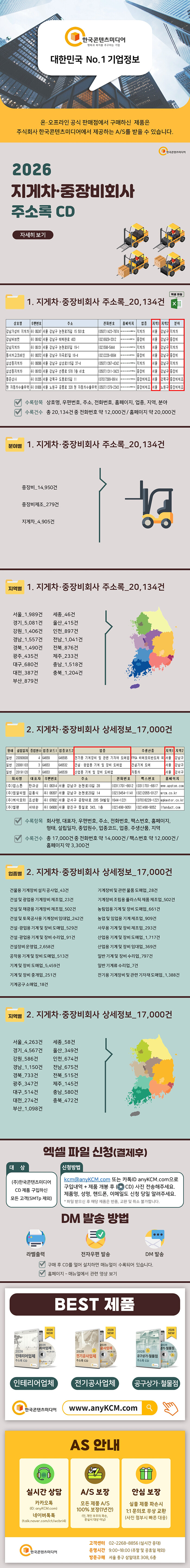 수록건수 : 총 17,000건 중 전화번호 약 14,000건 / 팩스번호 약 12,000건 / 홈페이지 약 3,300건