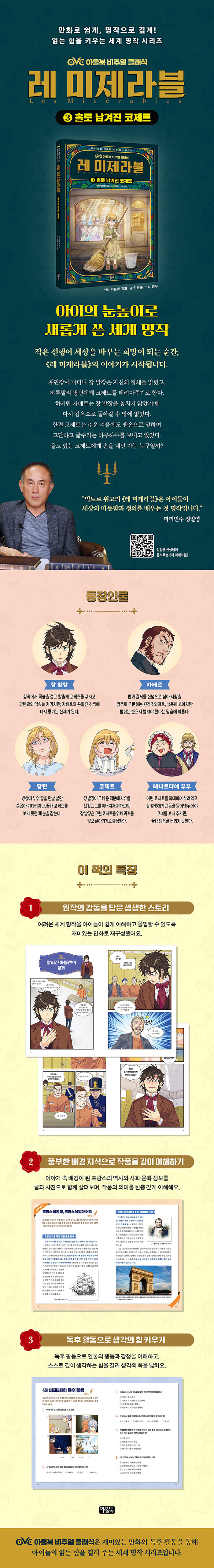 - 만화로 재구성한 <레 미제라블>은 그림과 함께 이야기를 읽을 수 있어 초등 저학년부터 고학년까지 재미있게 고전 문학을 접할 수 있다.