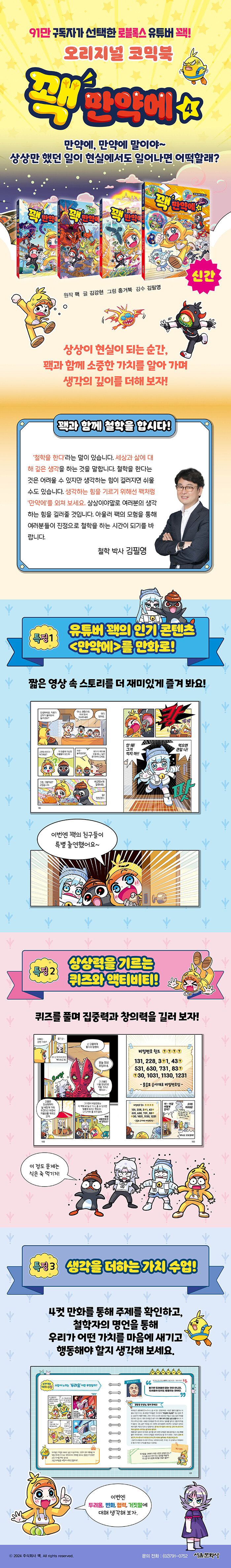 만약에, 만약에 말이야~. 상상만 했던 일이 현실에서도 일어난다면 어떡할래? <만약에>라는 기상천외한 상황에서 우리는 어떤 가치를 선택해야 할까? 꽥과 철학가 김필영의 만남.