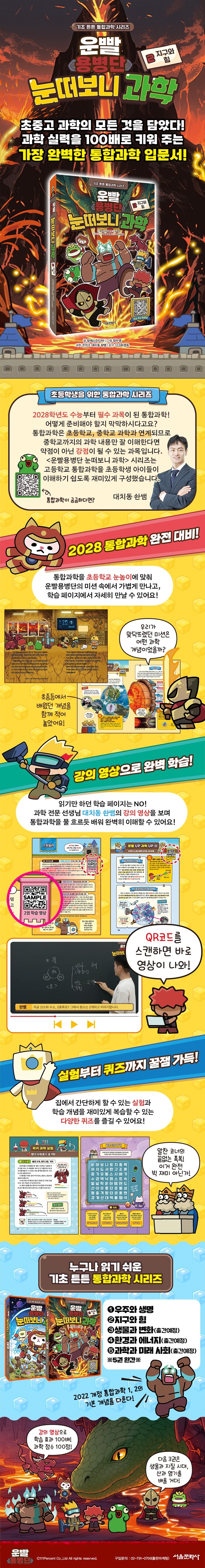 글로벌 인기 모바일 게임 <운빨존많겜>의 세계관 속 ‘운빨용병단’이 과학 모험으로 돌아왔다. 『운빨용병단 눈떠보니 과학』은 초등학생도 고등학교 통합과학 개념을 쉽게 이해할 수 있도록 구성된 스토리형 학습 만동화 시리즈이다.