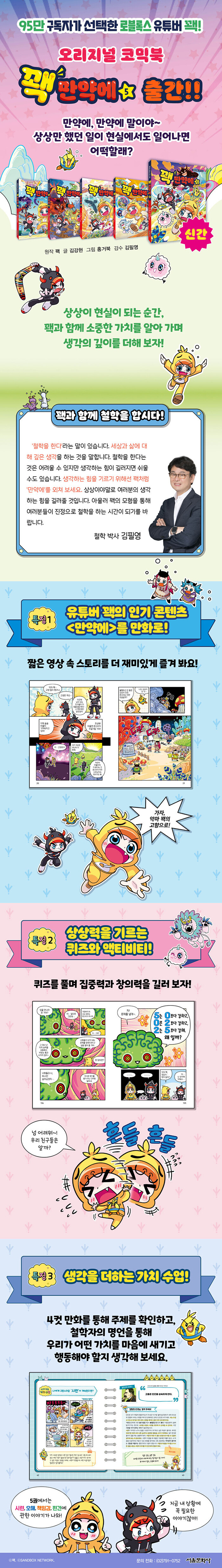 유튜버 꽥의 인기 콘텐츠 <만약에>를 만화로 옮겨, 상상이 현실이 되는 순간 벌어지는 이야기를 따라간다. ‘만약에’를 외치며 시작된 상상은 예상치 못한 문제로 이어지고, 이를 해결하기 위해 슈퍼 꽥이 되어 현실의 문을 찾아 나선다. 스토리 중심 전개로 몰입감을 높인다.