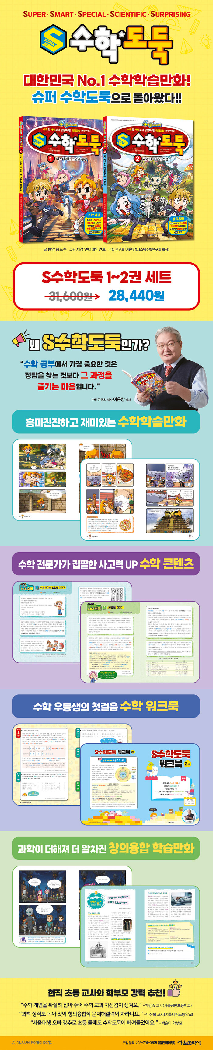 2006년 첫 출간되어 2024년 100권으로 완결 후 지금까지 누적 판매 880만 부를 기록하고 있는 수학도둑. 수학도둑을 사랑해 주신 수많은 어린이 독자와 학부모님의 바람을 담아 2025년 5월, <S수학도둑>으로 새롭게 탄생했다.