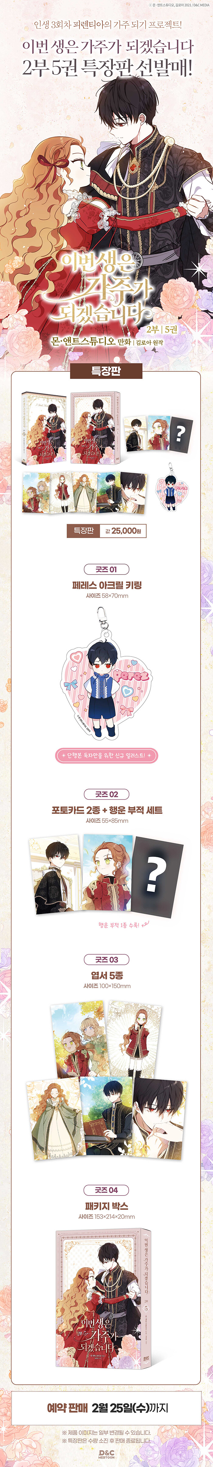 · 제목 : 이번 생은 가주가 되겠습니다 2부 5 (특장판) (페레스 아크릴 키링 1종 + 포토카드 2종 & 행운부적 세트 + 엽서 5종, 만화)