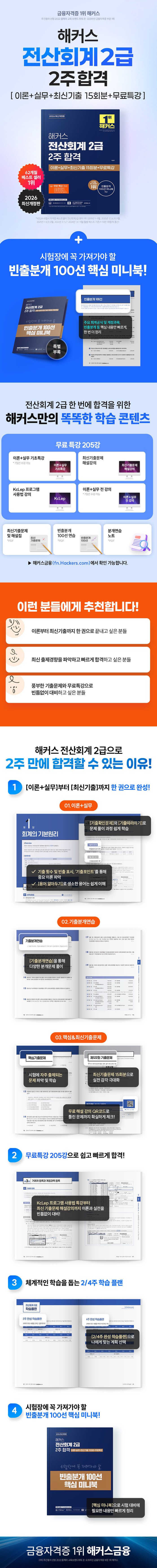 · 제목 : 2026 해커스 전산회계 2급 2주 합격 이론+실무+최신기출 15회분+무료특강 (최신기출문제 해설강의|이론+실무 전 강의|KcLep 프로그램 사용법 강의|빈출분개 100선 미니북)