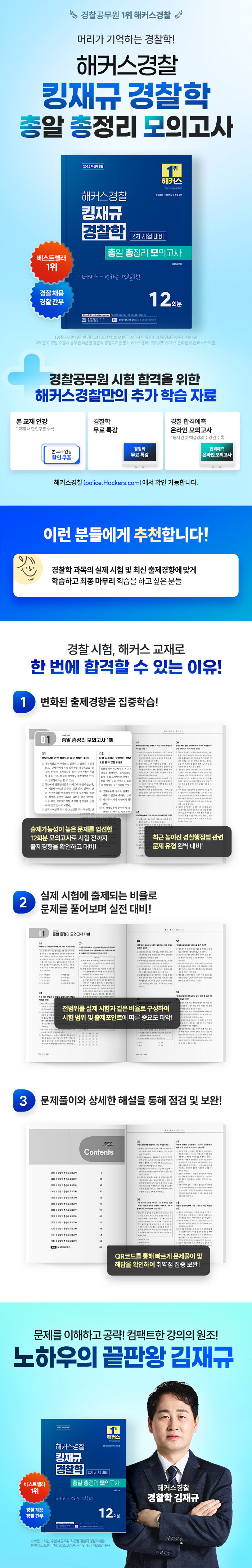 · 제목 : 2025 해커스경찰 킹재규 경찰학 총알 총정리 모의고사 2차 시험 대비 (12회분┃경찰채용, 경찰간부 시험 대비┃심화, 사례형 문제 대비)