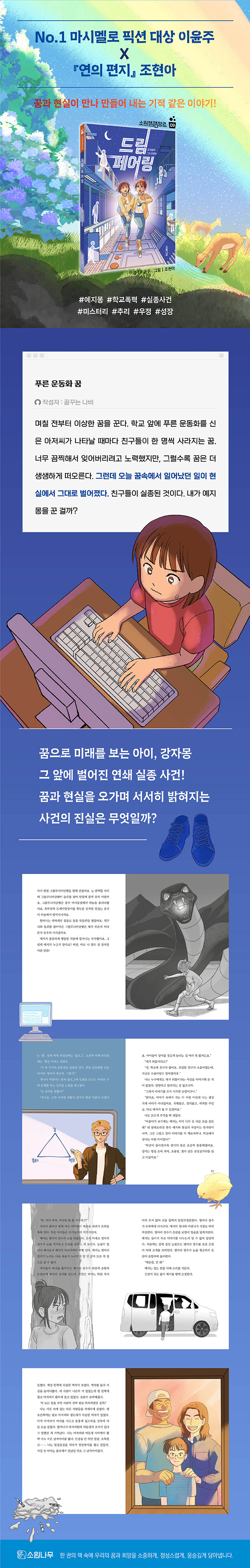 『드림 페어링』은 시간과 공간을 자유롭게 넘나드는 독특한 이야기 구조를 가졌다. 연쇄 실종 사건이 일어나는 현재를 중심으로 자몽과 친구들의 과거 시간, 예지가 활약하는 꿈속 공간, 현실과 꿈의 경계가 모호한 온라인 블로그까지. 시간순으로 전개되는 전통적인 전개에서 벗어난 과감한 전환은 독자에게 신선한 재미를 주고 이야기를 입체적으로 만든다.