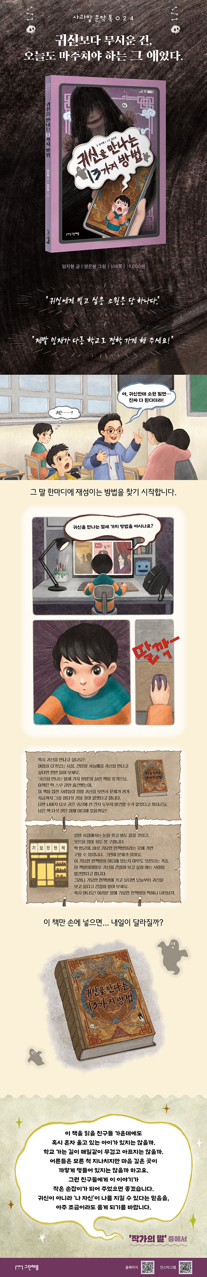 《우리 반 욕 킬러》, 《우리 반 팩폭러》, 《유튜브 스타 금은동》, 〈내일은 슈퍼리치〉, 〈푸하하 달리기 클럽〉등으로 아이들의 말과 관계, 미디어 환경을 여러 각도에서 비춰 온 임지형이, 이번에는 “귀신”이라는 으스스한 소재를 통해 학교폭력과 또래 괴롭힘이라는 무거운 주제를 아이들 눈높이에서 풀어낸다.