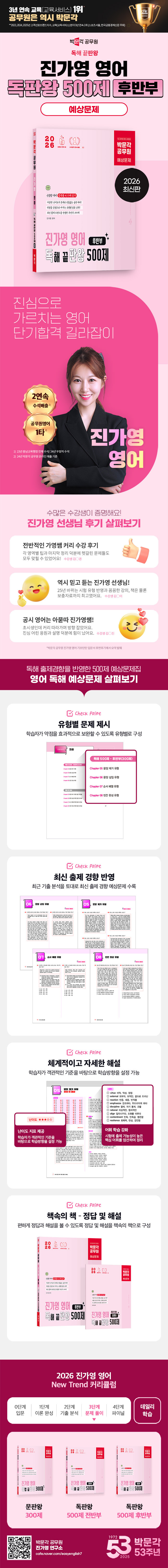 · 제목 : 2026 박문각 공무원 진가영 영어 독해 끝판왕 500제 후반부(독판왕) (박문각 공무원 9급 시험대비 진가영 영어 독해 예상문제집)