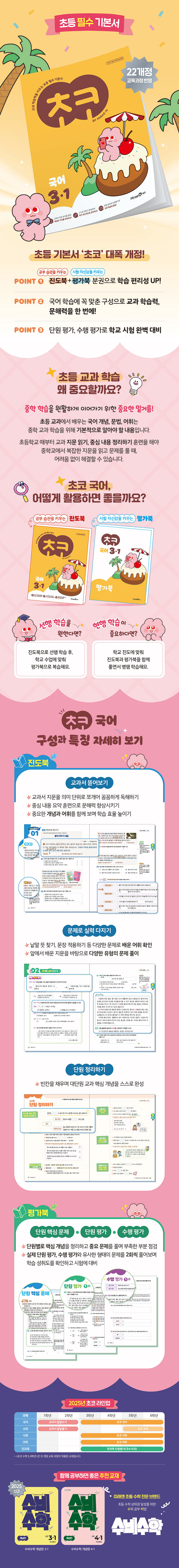 교과서 지문을 의미 단위로 읽으며 국어 교과 학습력과 문해력을 함께 키운다. 진도북과 평가북 구성으로 평소 학습부터 학교 시험 대비까지 연결한다. 어휘, 문법, 읽기, 쓰기, 듣기 말하기 전 영역을 한 권으로 학습한다.