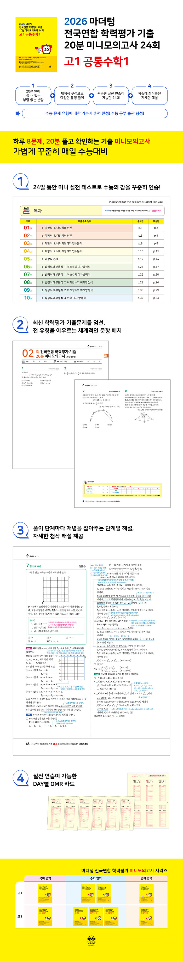 · 제목 : 마더텅 전국연합 학력평가 기출 20분 미니모의고사 24회 고1 공통수학 1 (2026년) (2022 개정 교육과정)