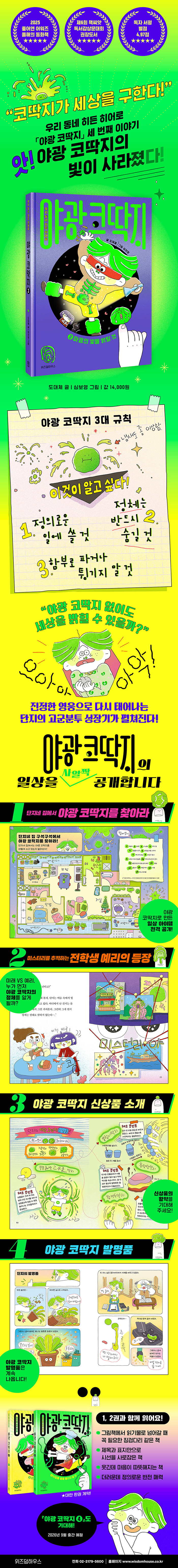 반짝반짝 빛나는 야광 코딱지로 이웃을 돕는 다정한 히어로 「야광 코딱지」가 3권으로 돌아왔다. 이번 권에서 단지는 사상 최대의 위기를 맞는다. 지독한 감기에 걸린 뒤, 거짓말처럼 야광 코딱지의 빛이 사라져 버린 것이다.