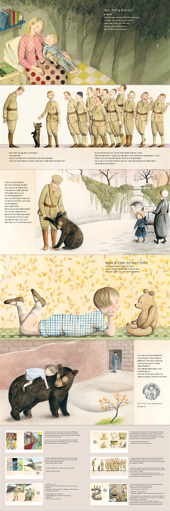 2016년 칼데콧 대상 수상작. 칼데콧 심사위원들에게 “그림으로 들려주는 스토리텔링의 걸작!”, “한 군인과 곰 사이의 우정을 매개로 가족사가 담긴 따뜻한 이야기를 수채화처럼 아름답게 풀어낸다.”는 극찬을 받았다.