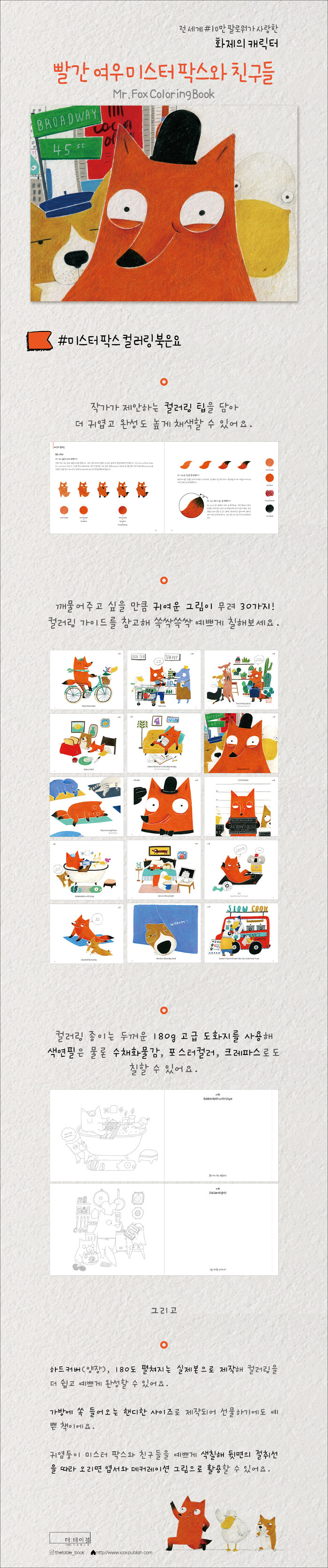 인스타그램에서 '100 Day Project'로 시작한 미스터 팍스(Mr. Fox) 이야기가 컬러링 북으로 나오게 되었네요. 주변에서 일어나는 일들, 평상시 생각하는 일들을 바탕으로 짤막짤막한 에피소드들을 한 컷 한 컷 담았어요. 빨간 여우 미스터 팍스의 하루하루를 색칠하면서 귀염둥이 친구들의 일상을 함께해보세요.