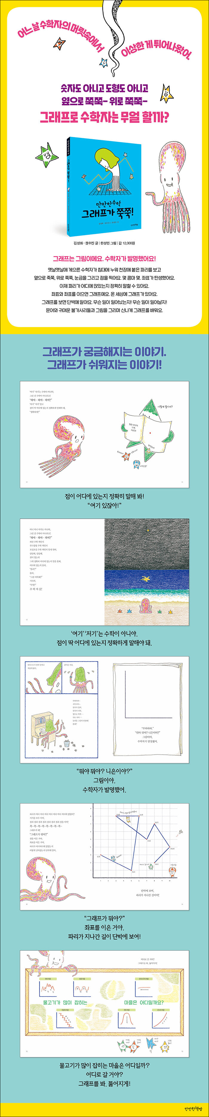 그래프는 수학에서 매우 중요한 개념이다. 함수와 미적분, 고등 수학으로 이어지는 놀라운 수학적 발견이다. 이 책에서는 학교에서 딱딱하고 어렵게 그래프를 배우기 전에 아이들이 스스로 생각하고, 그리고, 놀며 자연스럽게 그래프의 개념을 배우도록 돕는다.