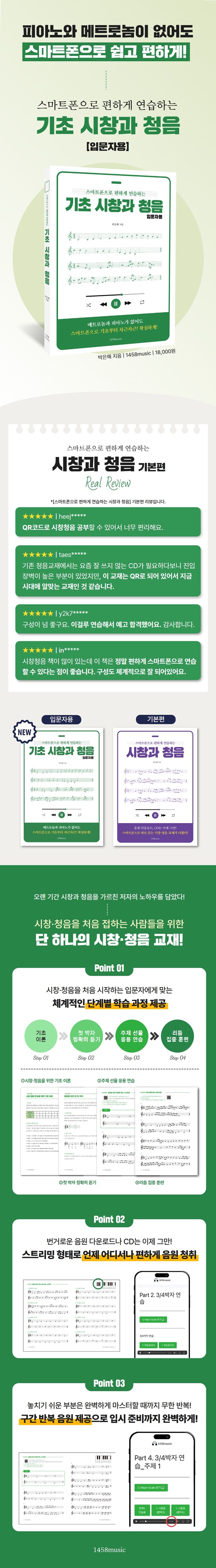 입시와 전공 과정에서 늘 부담이었던 시창·청음을 이제는 스마트폰 하나로 편하게 연습할 수 있다. 〈기초 시창과 청음 입문자용 : 스마트폰으로 편하게 연습하는〉은 시창·청음을 처음 접하는 사람들을 위해 기초 이론부터 차근차근 다지고, 실제 시험에 필요한 훈련 방식을 자연스럽게 익힐 수 있도록 구성된 교재이다.