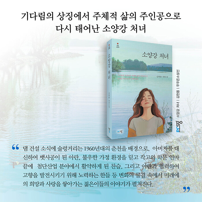 그래서 저자는 이 소설 『소양강 처녀』에서 애만 태우며 하염없이 서 있는 소양강 처녀상에 영혼을 넣어주고 싶었다. 우뚝 서 있는 처녀상의 여성이 노랫말에서 묘사하는 여성과 달리 소설의 주무대인 서면의 여성, 더 나아가 춘천 여성의 특성을 지니고 서 있음을 상상하면서 바라보기를 바라며 소설 속의 주인공을 묘사했다.(후략)