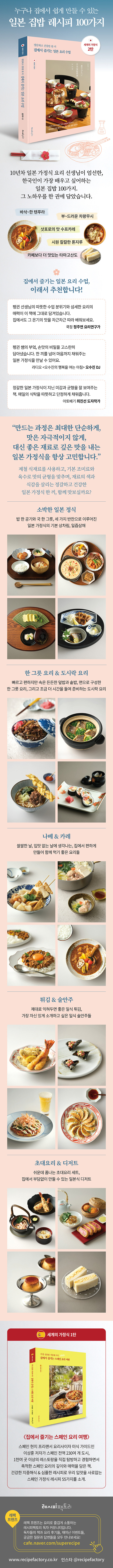 구성 또한 실용적으로 이루어져 있습니다. 톤지루, 차왕무시, 니쿠자가 등 익숙한 메뉴를 포함한 일즙삼채 정식부터 덮밥과 면 요리, 도시락, 튀김, 나베와 카레, 술안주, 초대요리와 디저트까지, 일본 식문화 전반을 아우르는 메뉴를 폭넓게 담았습니다. 특히 일즙삼채와 손님초대요리는 각각의 의미에 맞게 세트로 구성했습니다. 일즙삼채는 영양 균형을 고려한 식사 방식으로, 일상에서 바로 활용할 수 있도록 제안하고, 손님초대요리는 일본의 ‘오모테나시(환대)’ 정신이 담긴 메뉴들로 구성해 상황에 맞게 차릴 수 있도록 했습니다. 또한 일본 요리의 핵심인 육수(다시)와 기본 조미료의 쓰임을 함께 설명해 초보자도 자연스럽게 이해하고 응용할 수 있도록 했습니다. 과정 컷과 조리 설명을 꼼꼼하게 담아 누구나 쉽게 따라할 수 있으며, 그릇과 담음새까지 신경 쓴 스타일링으로 보는 즐거움도 더했습니다.