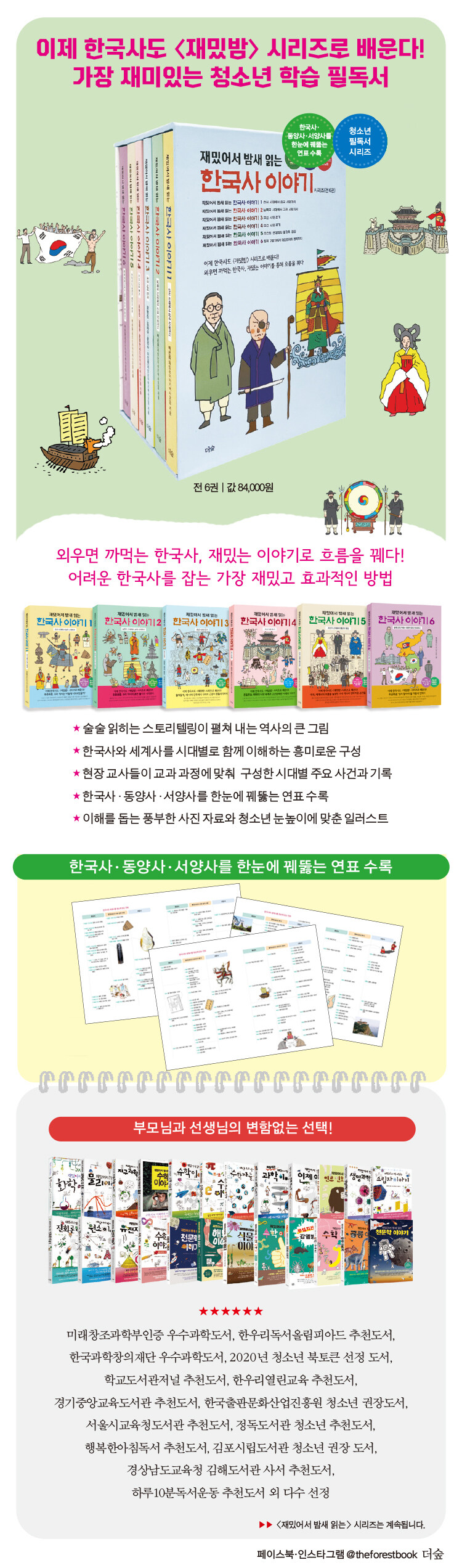 청소년 필독서로 각종 추천도서와 우수과학도서로 선정되고 청소년은 물론 부모님과 선생님들의 든든한 지지 속에 꾸준히 사랑받아 온 '재밌어서 밤새 읽는'(이하 '재밌밤') 시리즈의 ‘한국사 이야기’가 전 6권으로 완간되었다.