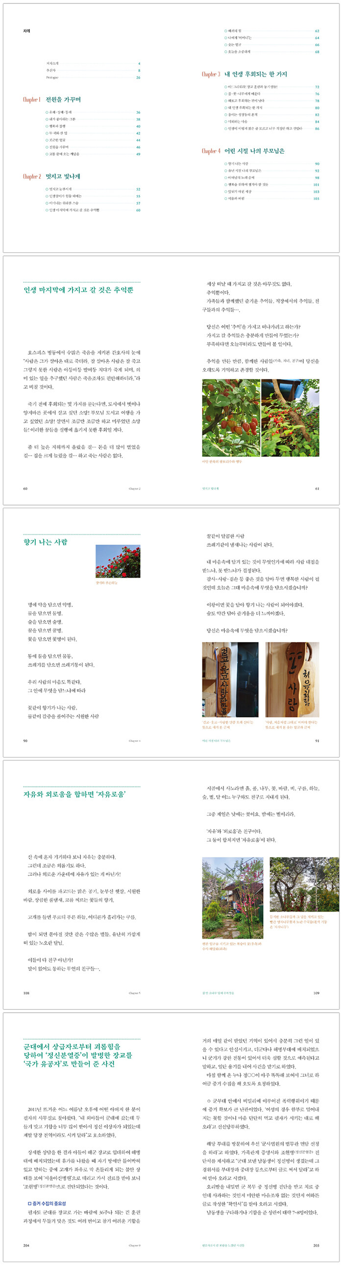 일을 하면서, 자연을 접하면서, 스포츠를 하면서 느낀 소감들을 글로 적어 보기로 하였다. 몇 년간 틈틈이 메모하였더니 책 한 권 분량이 되었다. 그동안 몇 번에 걸쳐 수필집을 낸 경험을 바탕으로 용기를 내어 또 한 번 출간하기로 하였다. 나름대로 삶과 죽음을 살펴보고 미리미리 준비해 보았다.