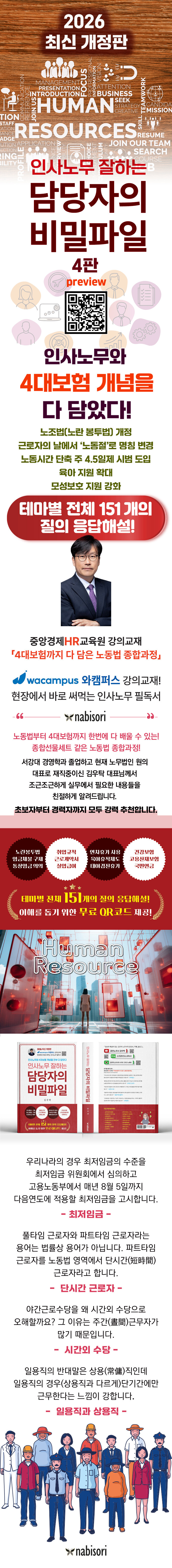 · 제목 : 인사노무 잘하는 담당자의 비밀파일 (인사노무와 4대보험 개념을 다 담았다, 2026년 최신 개정판)