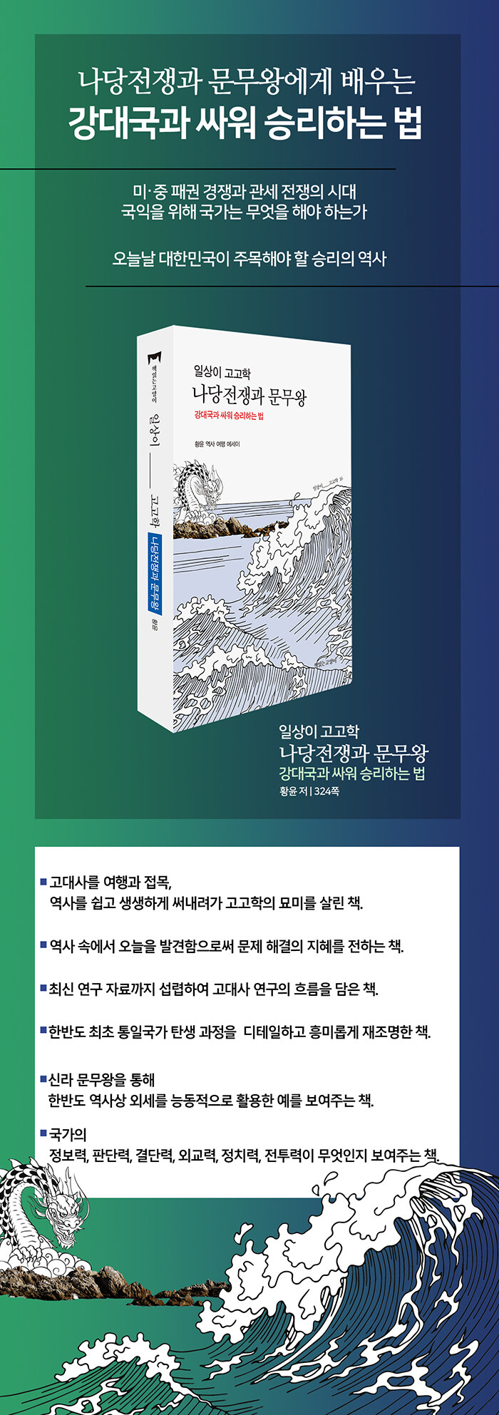 정글과 같은 세계 정세 속에서 오늘의 대한민국이 기억해야 할 역사적 사건인 나당전쟁과 문무왕을 재조명함으로써, 강대국에 맞서 승리하는 법을 제시한다. 문무왕이 보여준 역사의 명장면을 옛터를 직접 찾아가 문헌의 명확한 고증을 통해 생생하게 담아냈다.