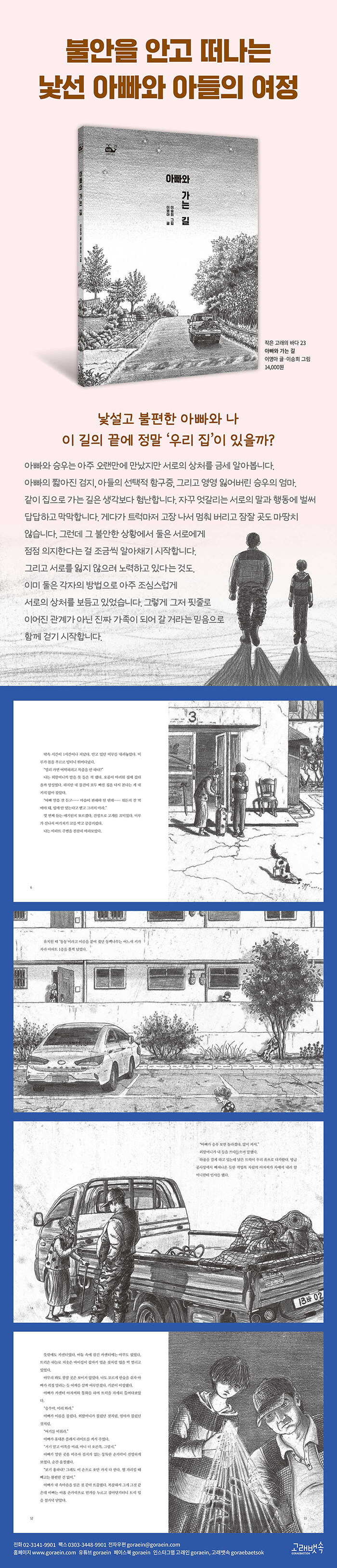 책을 완성한 지금 그 과정을 돌아보니, 아빠와 아들이 함께할 이유를 말없이 찾아낸 것처럼 두 작가도 글과 그림이 어떻게 어우러져야 하는지 함께 찾으며 걸어왔습니다. 마치 이 책을 읽게 될, 두려운 길 앞에 선 누군가를 응원하기 위해서라도 어떻게든 잘해내야만 했던 듯합니다.