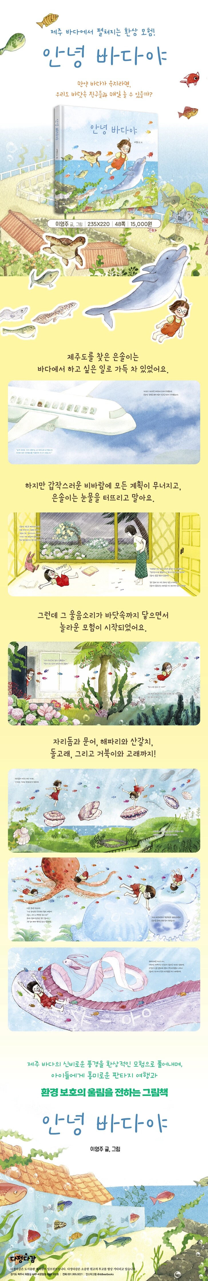 제주 바다의 신비로운 풍경을 환상적인 모험으로 풀어내며, 아이들에게 흥미로운 판타지 여행과 동시에 환경 보호의 울림을 전하는 그림책이다. 환상과 현실이 만나는 아름다운 이야기 속에서, 우리는 아이의 눈으로 다시 바다를 바라보고 그 소중함을 느끼게 될 것이다.