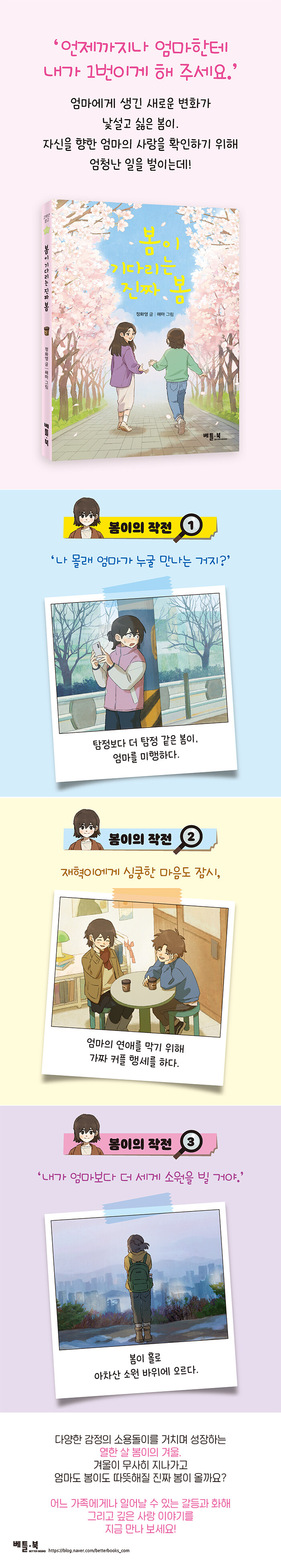 엄마의 연애 소식 앞에서 흔들리는 열한 살 봄이의 마음을 따라간다. 가족의 변화와 아이의 성장을 섬세하게 그리며, 다양한 가족의 모습을 자연스럽게 전하는 이야기다.