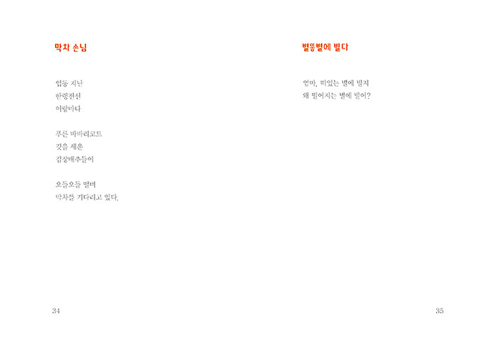 번개 68 | 웃음 69 | 씨가 자라면 70 | 구두시험 71 | 배고픈 버스 72 | 해바라기 73 | 별말씀 74 | 돌 속에는 불이 산다 75 | 짜장면으로 눈물 닦기 76