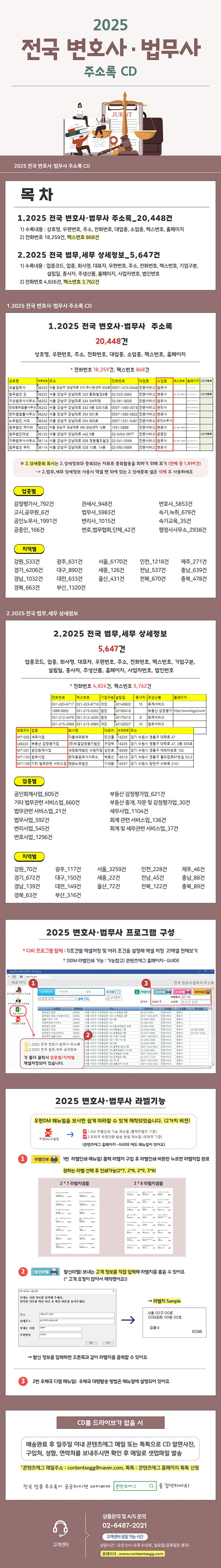 ② 엑셀저장 : 상호명, 우편번호, 주소, 전화번호, 대업종, 소업종, 팩스번호, 홈페이지, 상세중복 (* 전화번호 18,259건, 팩스번호 868건)