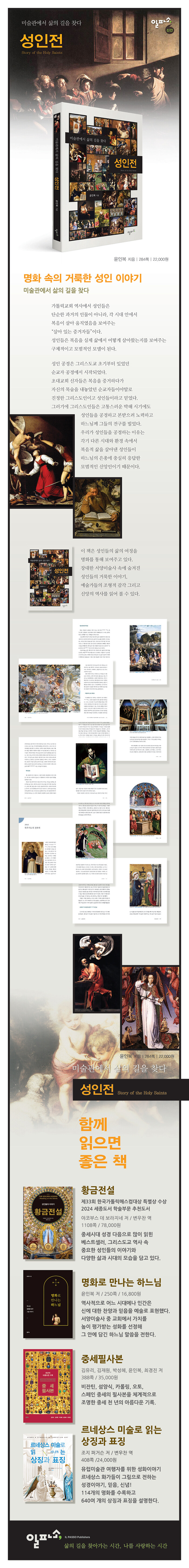 이 책은 성인들의 삶의 여정을 명화를 통해 보여주고 있다. 장대한 서양미술사 속에 숨겨진 성인들의 거룩한 이야기, 예술가들의 조형적 감각 그리고 신앙의 역사를 읽어 볼 수 있다.