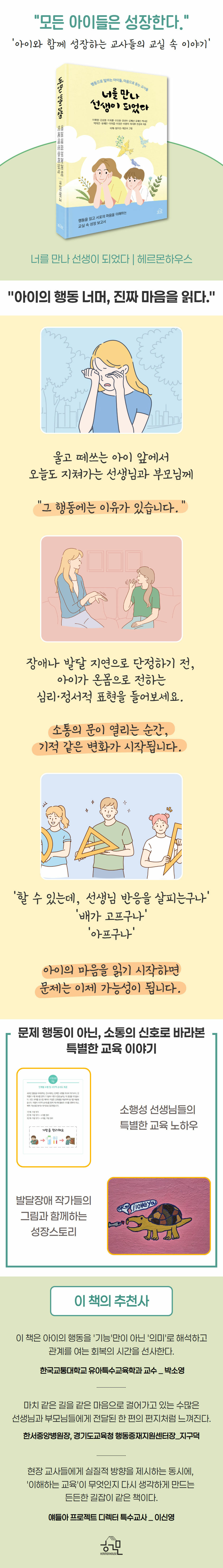 학교 현장에 있다 보면, 우리 아이들을 바라보는 시선이 때로는 따갑게 느껴질 때가 있다. 어쩌면 그 아이에게 가해지는 자극과 주어진 환경이 오히려 아이를 힘들게 했을 수도 있는데 말이다. 나는 특수교사로서 통합학급 교사와 지속적으로 소통하여 학생이 문제 행동을 일으키는 환경을 분석하고, 관련 전문가들이 함께 중재 전략을 수립해야 학생을 더욱 효과적으로 지원할 수 있음을 깨달았다.