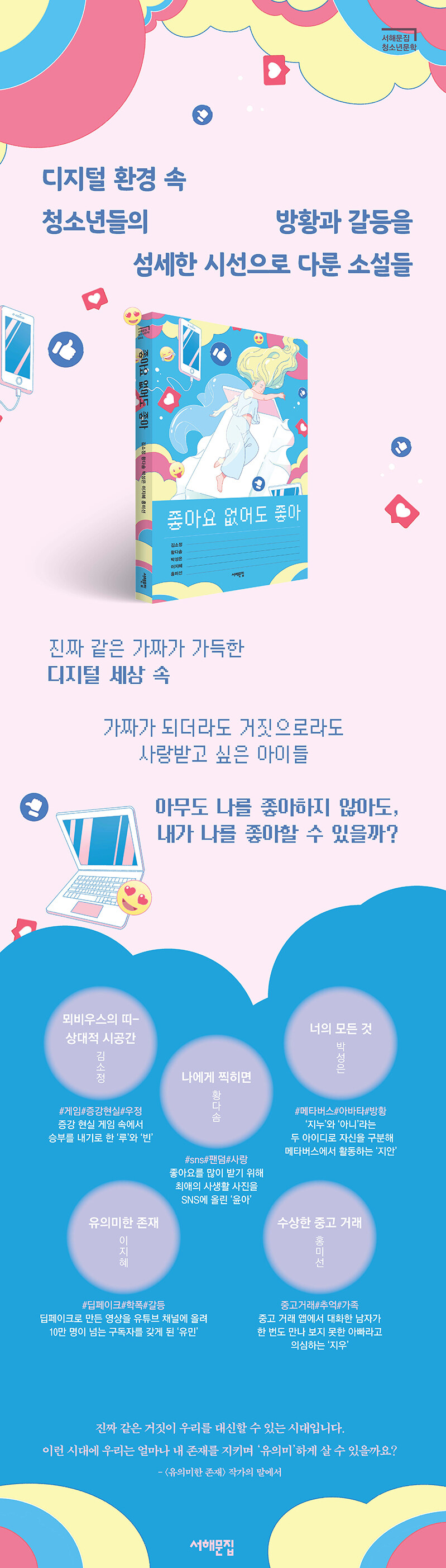 디지털 세계에서 아이디로 살아가는 청소년들의 선택과 욕망을 그린 소설집이다. SNS와 메타버스, 딥페이크를 통해 결핍과 연결의 마음을 들여다보며, 가짜 세계에서 진짜 나를 발견하는 순간을 전한다.