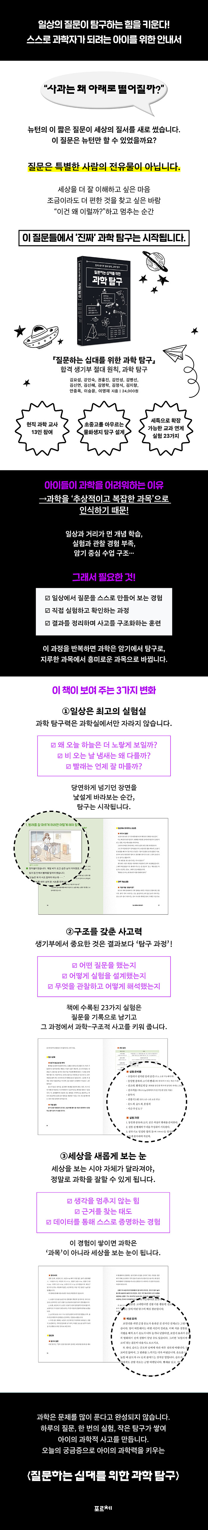 질문은 시작이고, 탐구는 과정입니다. 하지만 모든 질문이 탐구로 이어지는 건 아닙니다. 탐구로 발전하려면 ‘좋은 질문’을 ‘실험 가능한 질문’으로 다듬는 과정이 필요합니다. 이 책의 1장부터 4장까지는 질문을 탐구로 연결하는 과정이 담겨 있습니다. 앞으로 소개하는 방식을 익혀 여러분의 궁금증을 직접 탐구로 바꿔 보세요. 질문을 던지고, 탐구를 설계하고, 결론을 통해 배우는 과정이 처음엔 낯설지만 금세 손에 익을 겁니다.