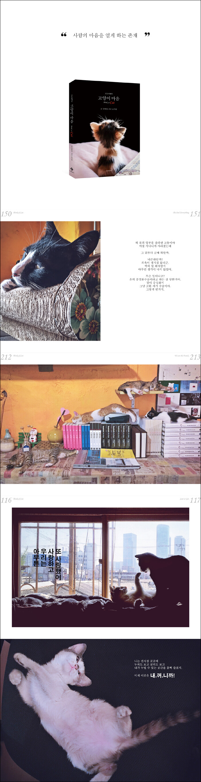 포토 에세이집. '고양이가 말을 한다면…'이라는 느낌의 책이다 고양이가 자신들의 이야기를 하는 문장으로 이루어져 있고 모든 사진들이 마치 고양이가 연기라도 한 듯 내용에 알 맞는 사진들은 웃음을 자아낸다. 게다가 즐겁고 조금은 유쾌할 것으로 예상되는 책 속에는 귀여운 사진과 명랑한 문장과는 대조적인 슬픔 또한 가득하다.