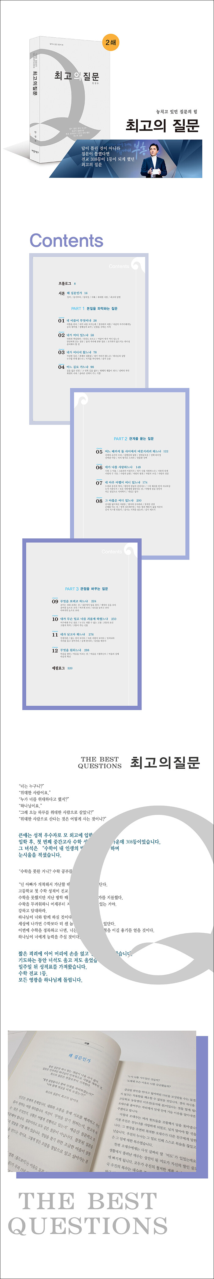 오늘날은 일방적 선포와 외침의 시대를 지나 소통하고 교감하는 설득의 시대입니다. 대화, 질문, 설득을 체득하지 못하고 누군가에게 판단과 강요로 대한다면 그 공동체의 미래는 어둡습니다. 명령이나 강요의 환경 속에서 자랐다면 대화법을 훈련받아야 합니다. 최고의 방법은 예수님을 통해 배우는 것인데요. 예수님은 역사상 완전한 사람이요 하나님이시기 때문에 그분의 가르침은 완전합니다. 하나님의 질문은 질문 중의 질문입니다. (중략) 질문은 판단이나 강요로 치달을 수 있는 만남이 소통이 되게 합니다. 질문을 하면 대화가 됩니다. 설명을 하면 지시가 되기 십상이지만 질문은 상대방으로부터 잠재된 것을 끌어내 춤추게 합니다. 질문은 처음이요 마지막입니다. 질문은 관계이며 동기부여의 원천이고 인격입니다. 창의성의 시작이요 종결입니다.